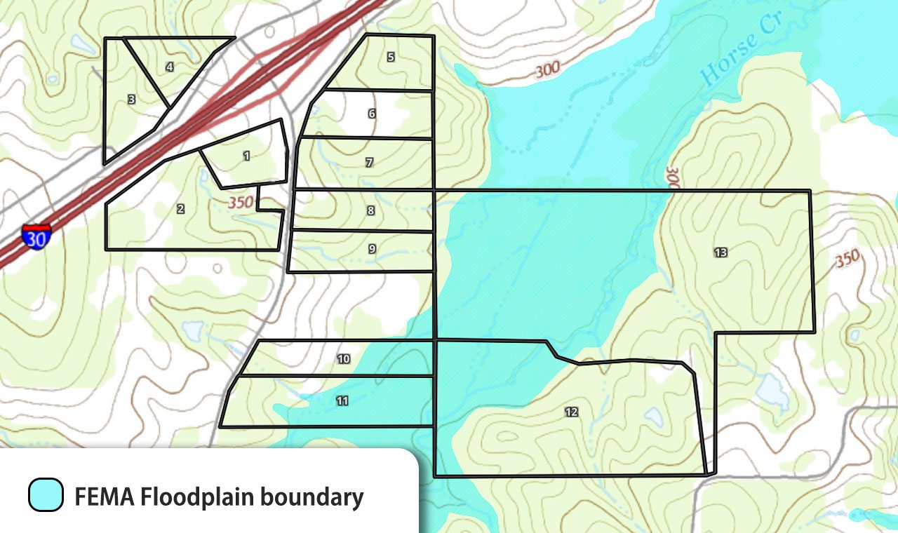 - Parcel 3: 12.3+/- acres with 910+/- feet of I-30 frontage.