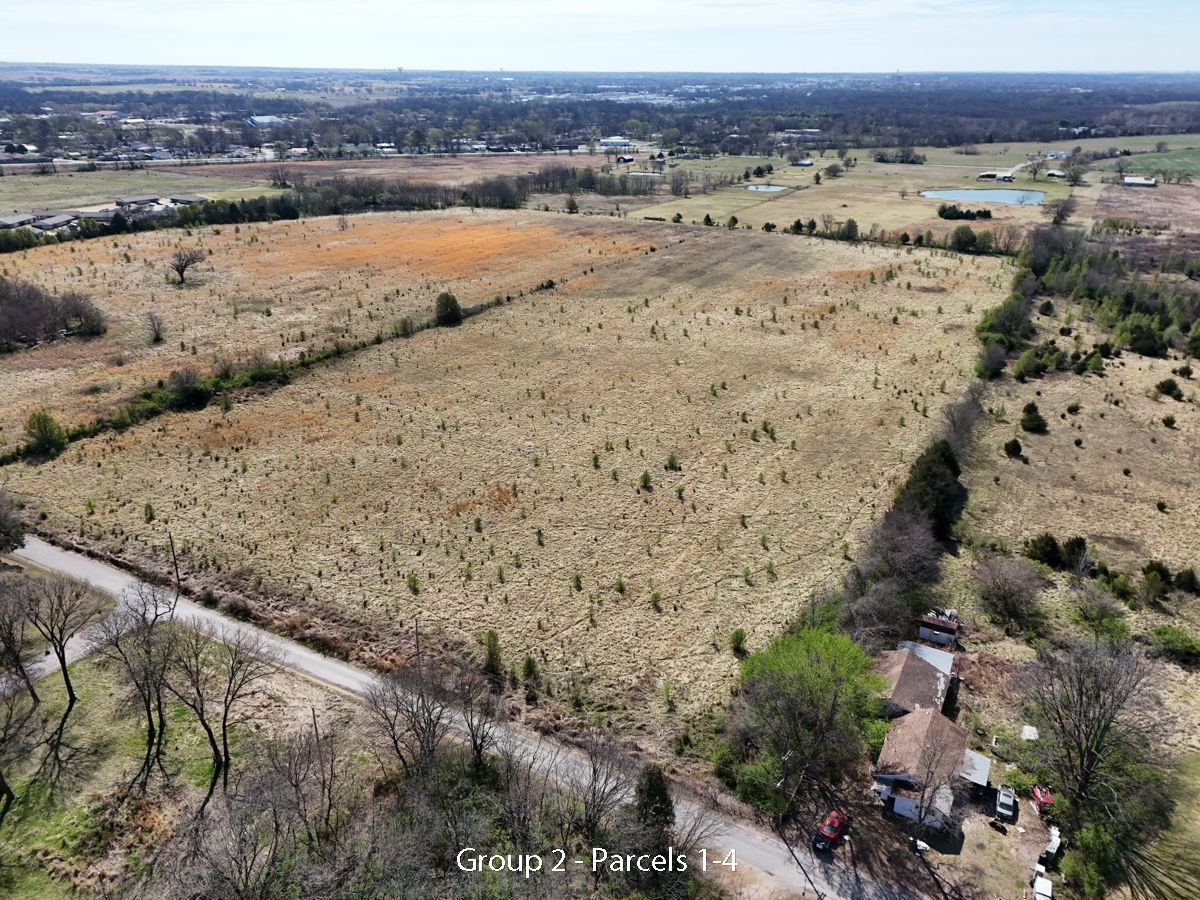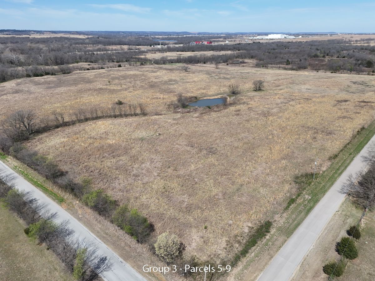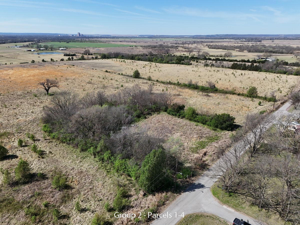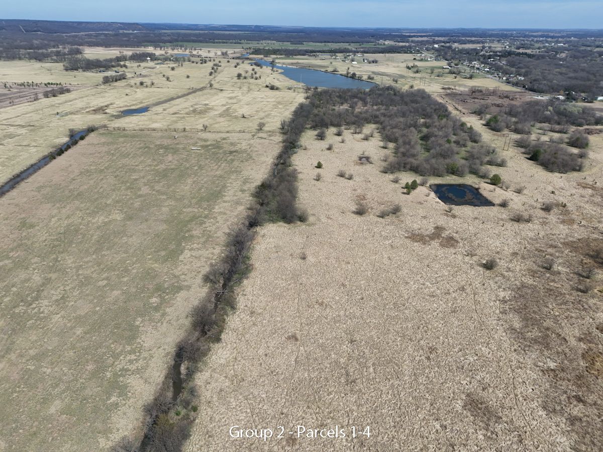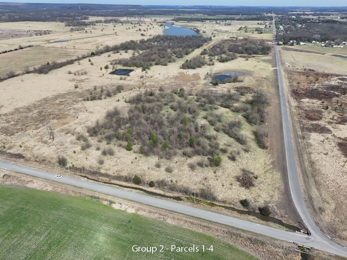 Hwy 75 devlopment land offered in five parcels along the Highway 75 corridor between Tulsa and Bartlesville. The offering includes two 40-acre tracts, one 20-acre tract, and two 10-acre tracts, with a mix of highway frontage, county road access, open pasture, scattered timber, and natural water features.