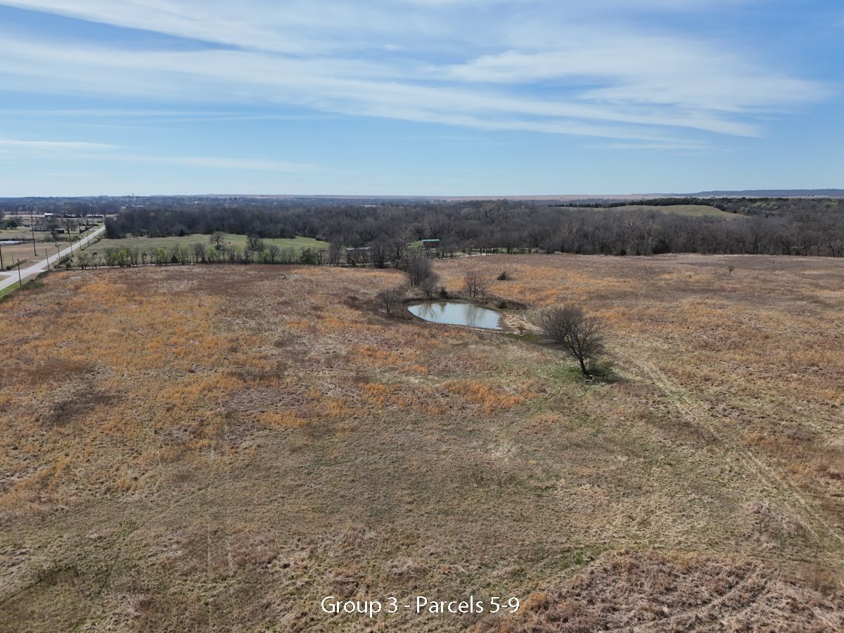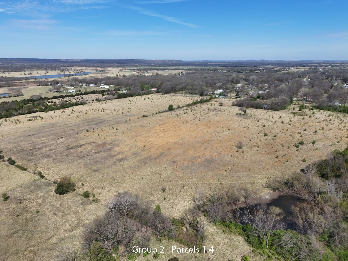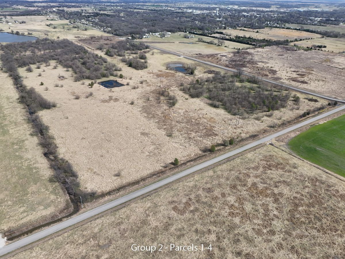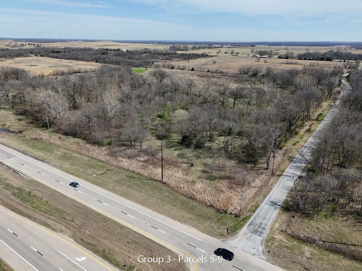 Hwy 75 devlopment land offered in five parcels along the Highway 75 corridor between Tulsa and Bartlesville. The offering includes two 40-acre tracts, one 20-acre tract, and two 10-acre tracts, with a mix of highway frontage, county road access, open pasture, scattered timber, and natural water features.