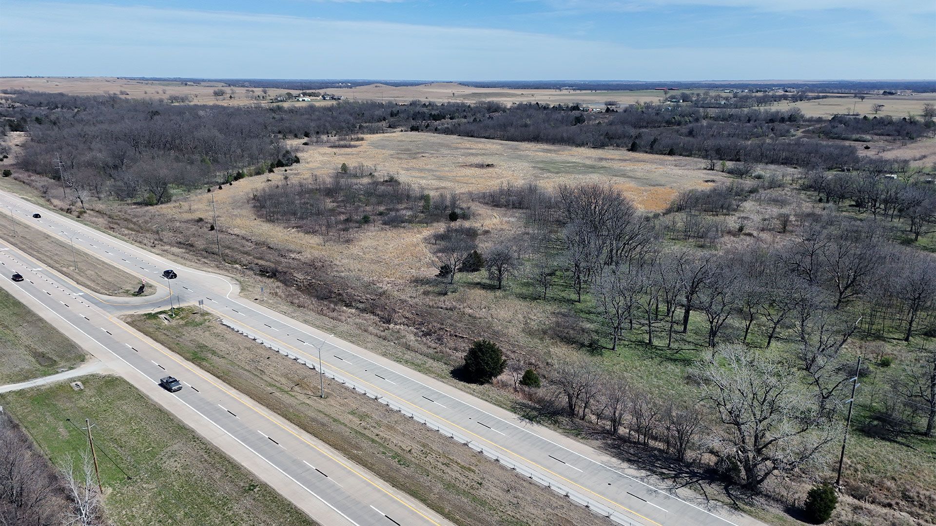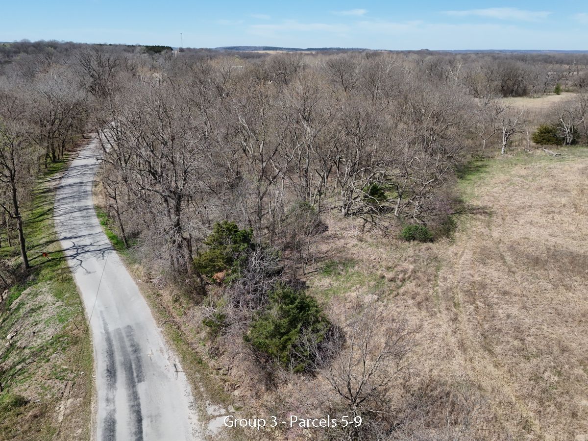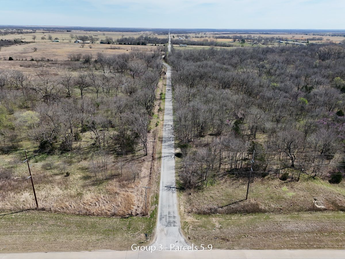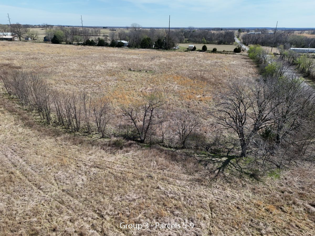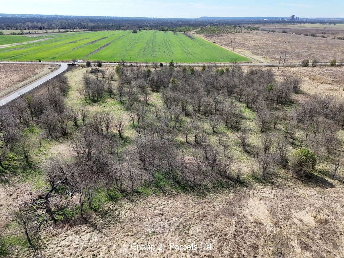 Hwy 75 devlopment land offered in five parcels along the Highway 75 corridor between Tulsa and Bartlesville. The offering includes two 40-acre tracts, one 20-acre tract, and two 10-acre tracts, with a mix of highway frontage, county road access, open pasture, scattered timber, and natural water features.